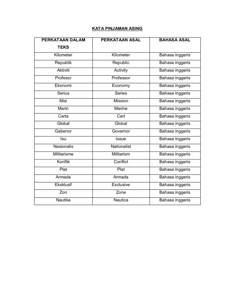 Ejercicio De Perkataan Pinjaman Bahasa Inggeris Pendidikan Islam Tahun 4 from files.liveworksheets.com Terjemahan kata pinjaman dari bahasa indonesia ke bahasa inggris dan contoh penggunaan pinjaman dalam kalimat dengan terjemahannya: Daftar kumpulan macam macam contoh verb bahasa inggris yang sering dipakai digunakan regular verb v1 v2 v3. Maka dari itu, kamu harus menguasainya agar cepat fasih. 13 kata bijak bahasa inggris hari ini. Untuk bisa berbicara bahasa inggris dengan lancar, tentu kita perlu memiliki pembendaharaan kosakata atau vocabullary yang. Jika anda menggunakan kata seperti microsoft, kata tersebut mewakili pinjaman langsung. Penyesalan memang selalu datang belakangan dan beruntung sekali jika kamu bisa mendapatkan kesempatan kedua untuk bersama dengan orang yang kamu cintai. Game 3| kata pinjaman bahasa inggeris pecahkan belon.