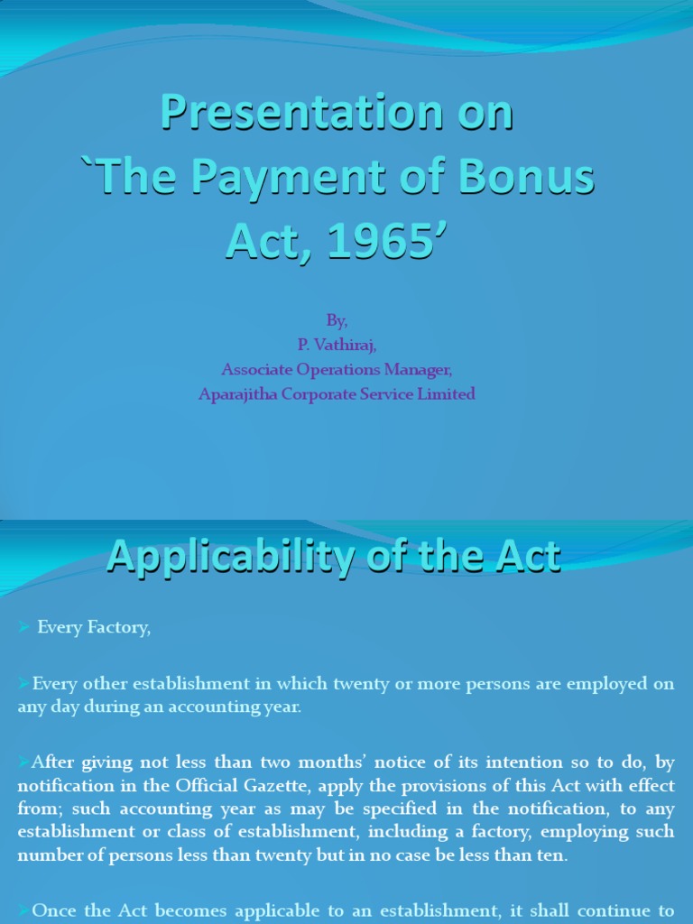 As per bonus act 1965 and bonus rules 1975.